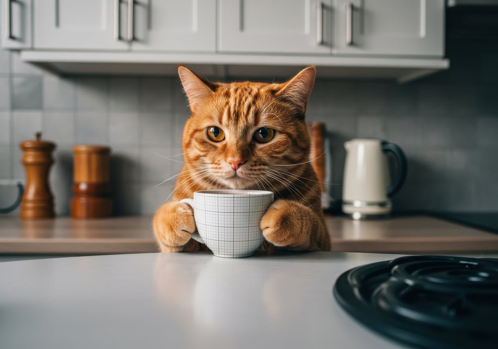 Cat Drinking Coffee Cup Mockup
